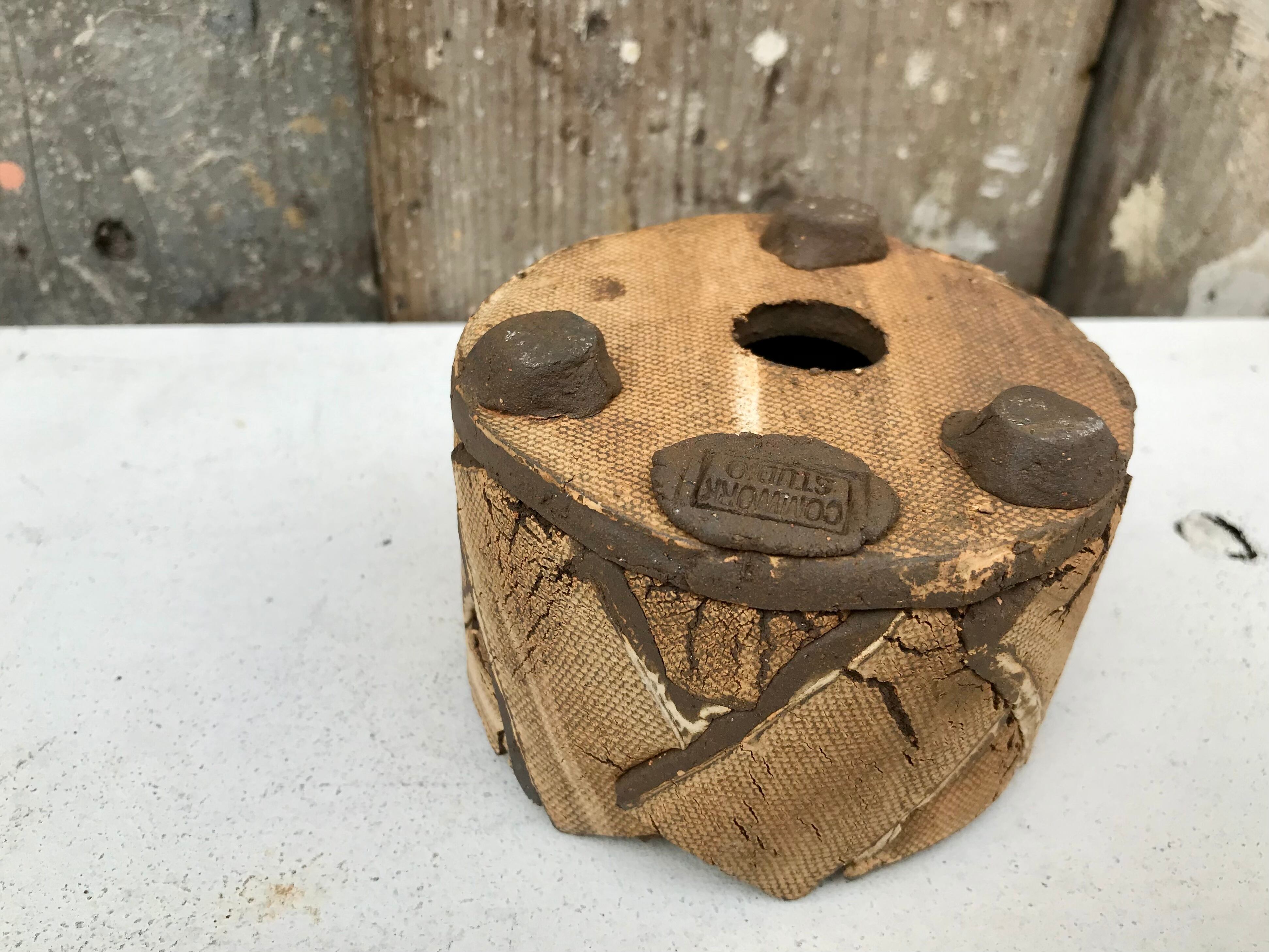 こちらは釉薬を使わずに焼き上げた焼き〆タイプで、土の持つひびという表情を前面に表現する製作方法がとられた作品。